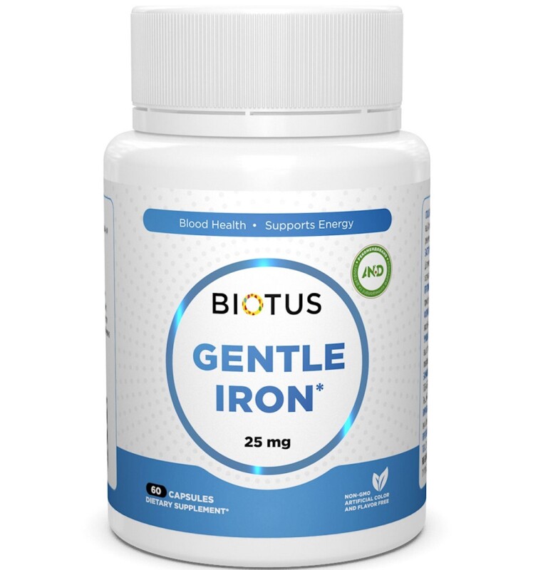 Froomo, маркетплейс професійної косметики та товарів для здоров'я\\Мікроелемент Залізо Biotus Gentle Iron 25 mg 60 Caps BIO-531149