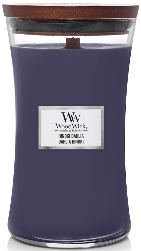 Froomo, маркетплейс професійної косметики та товарів для здоров'я\\Ароматична свічка з нотами дерева хінокі, сливи та жоржини Woodwick Large Hinoki Dahlia 609 г (1743611E)
