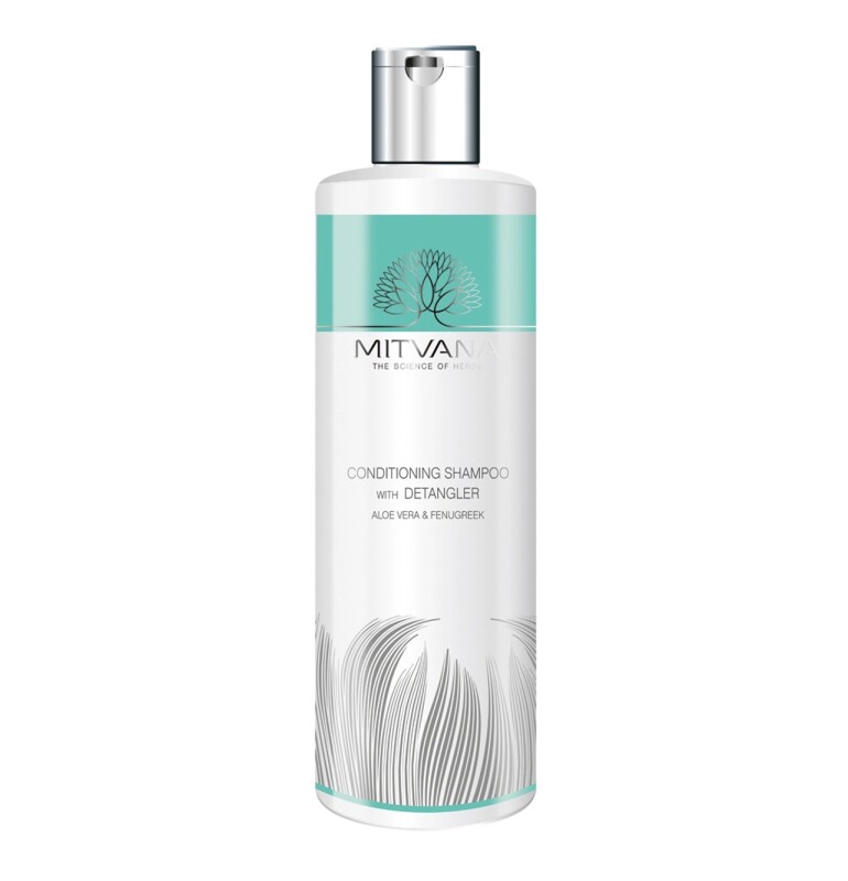 Froomo, маркетплейс професійної косметики та товарів для здоров'я\\Кондиціонуючий шампунь для неслухняного волосся Condtioning Shampoo Detangler with Aloe Vera & Fenugreek Mitvana 200 мл