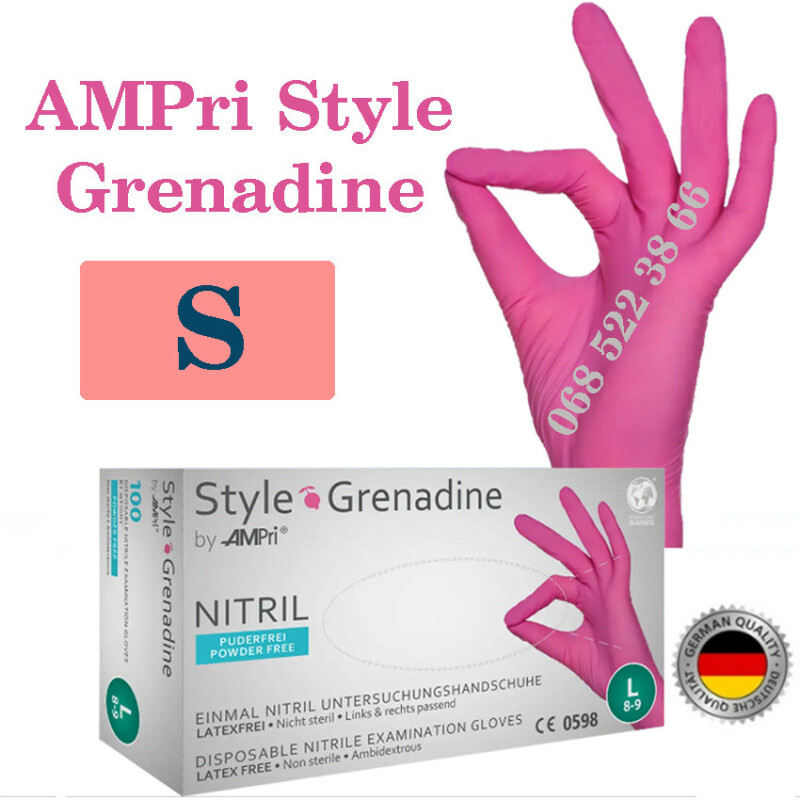Рукавиці нітрилові рожевий AMPri Style Grenadine розмір S, щільність 4г, уп.100 шт