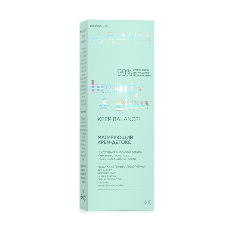Froomo, маркетплейс професійної косметики та товарів для здоров'я\\Матуючий крем-детокс серії Beauty & Glow Eveline 75 мл
