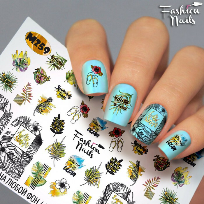Froomo, маркетплейс професійної косметики та товарів для здоров'я\\Водні наклейки для нігтів Листочки Рослини Слайдер дизайн Написи для манікюру Fashion Nails М259