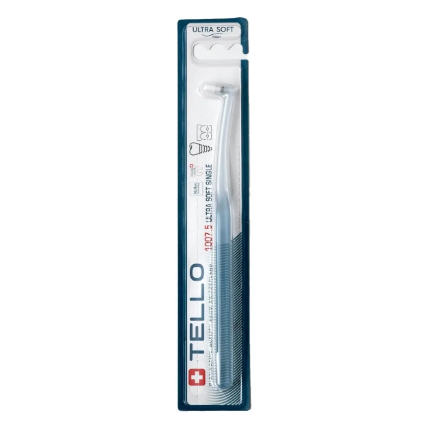 Монопучкова зубна щітка Tello Ultra Soft (Телло Ультра Софт), м'яка щітка для дітей 0,10 мм, біла