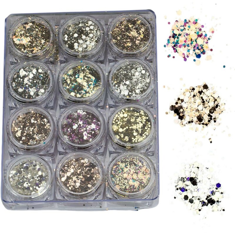 Froomo, маркетплейс професійної косметики та товарів для здоров'я\\Набір декору для манікюру GC-07 мерехтливі шестикутники та кружальця 12 кольорів.