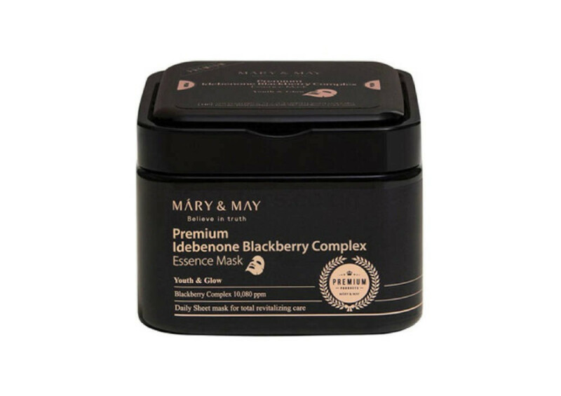Froomo, маркетплейс професійної косметики та товарів для здоров'я\\Набір тканинних масок з ідебеноном і ожиновим комплексом Mary & May Premium Idebenon Blackberry Complex Essence Mask, 20шт