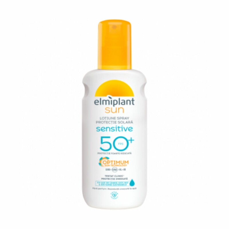 Froomo, маркетплейс професійної косметики та товарів для здоров'я\\Сонцезахисний лосьйон-спрей для тіла ELMIPLANT Spray lotion protectie solar SENSITIVE SPF50 200 ml