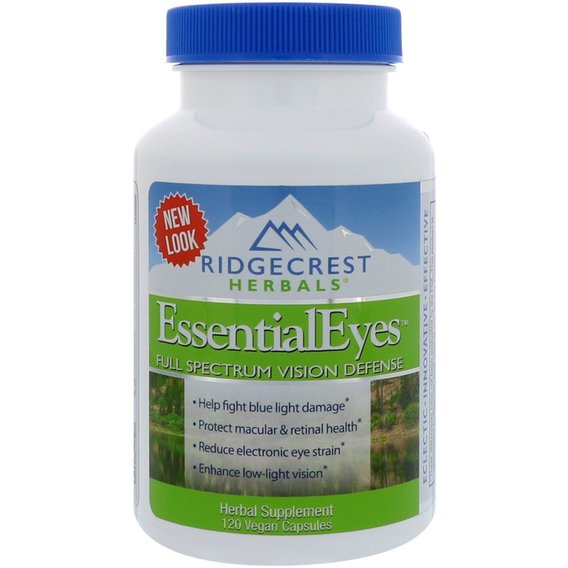 Froomo, маркетплейс професійної косметики та товарів для здоров'я\\Комплекс для профілактики зору RidgeCrest Herbals EssentialEyes 120 Veg Caps RCH197