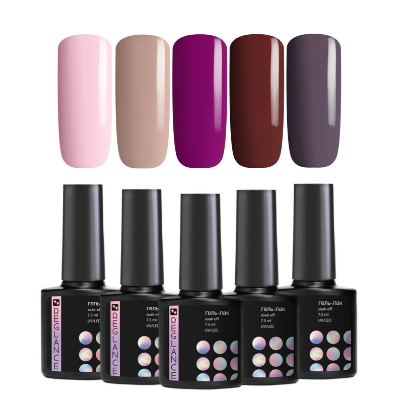 Набір 5 шт гель-лаки для нігтів Reglance Cherry cake 7.5 мл