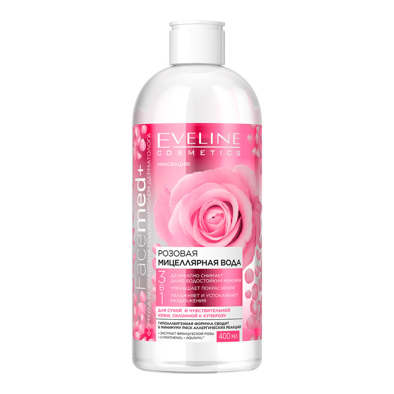 Froomo, маркетплейс професійної косметики та товарів для здоров'я\\Рожева міцелярна вода 3 в 1 для сухої та чутливої шкіри Eveline 400 мл