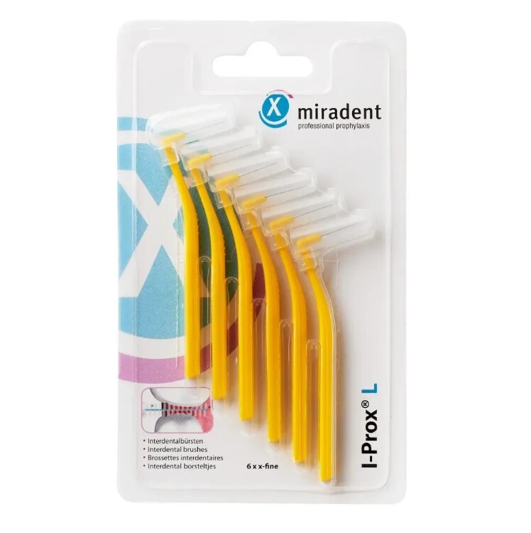 Froomo, маркетплейс професійної косметики та товарів для здоров'я\\Ручний інтердентальний йоржик Miradent I-Prox L, йоржик для чищення брекетів жовтий (2,0 мм) набір 6 шт
