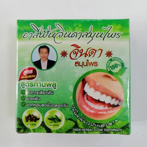 Froomo, маркетплейс професійної косметики та товарів для здоров'я\\Тайська зубна паста Jinda Herb відбілююча гвоздика і м'ята, 25 гр